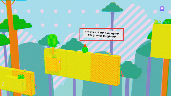 1、游戏中【Pressfortongertojumphigher】,即长按可跳得更高。这能帮助角色到达更高平台。