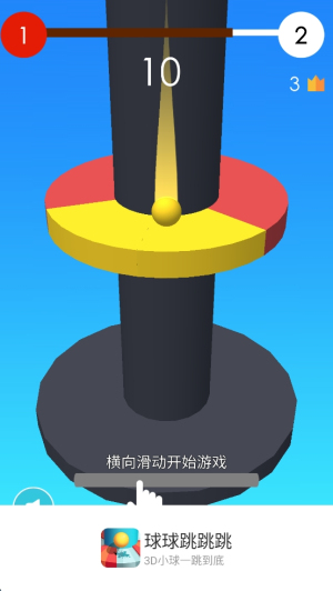 1、进行游戏:游戏开始后,通过控制球球在不同颜色的平台上跳跃,确保球球不掉落。