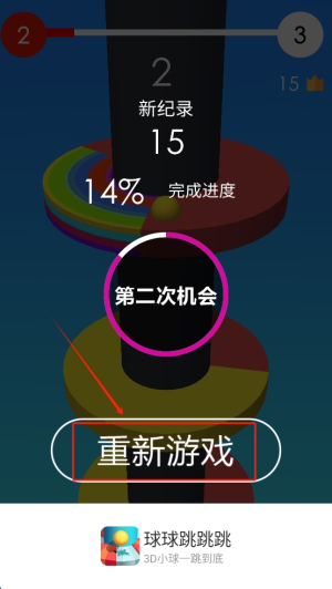 2、使用第二次机会:如果球球掉落,可以选择“第二次机会”按钮来继续游戏,或者选择“重新游戏”按钮重新开始。