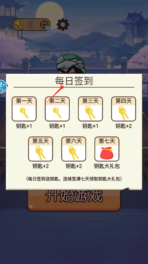 1 、每日签到获取钥匙,连续七天可领取钥匙大礼包,点击“每日签到”按钮开始签到。