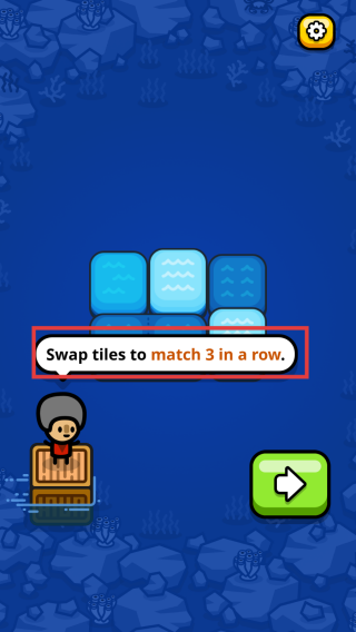 1、按照提示【Swaptilestomatch3inarow.】,通过交换方块位置,使三个相同方块连成一线来消除。