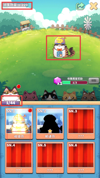 3、在图鉴收集界面,明确【收集数量】目标,努力收集不同职业的猫咪(如【收银员】等),达到收集要求后领取图鉴奖励。