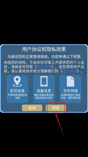 1、同意用户协议:在游戏开始前,阅读并同意《用户协议》和《隐私政策》,然后点击“同意”按钮以继续。
