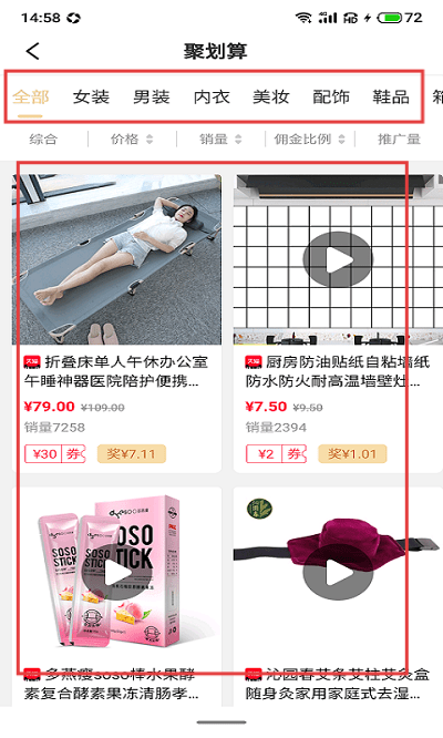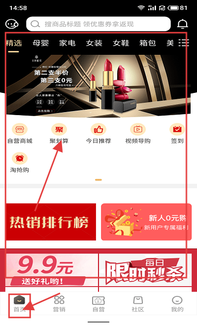 1、打开应用,在使用有很多精选商品,点击【聚划算】。