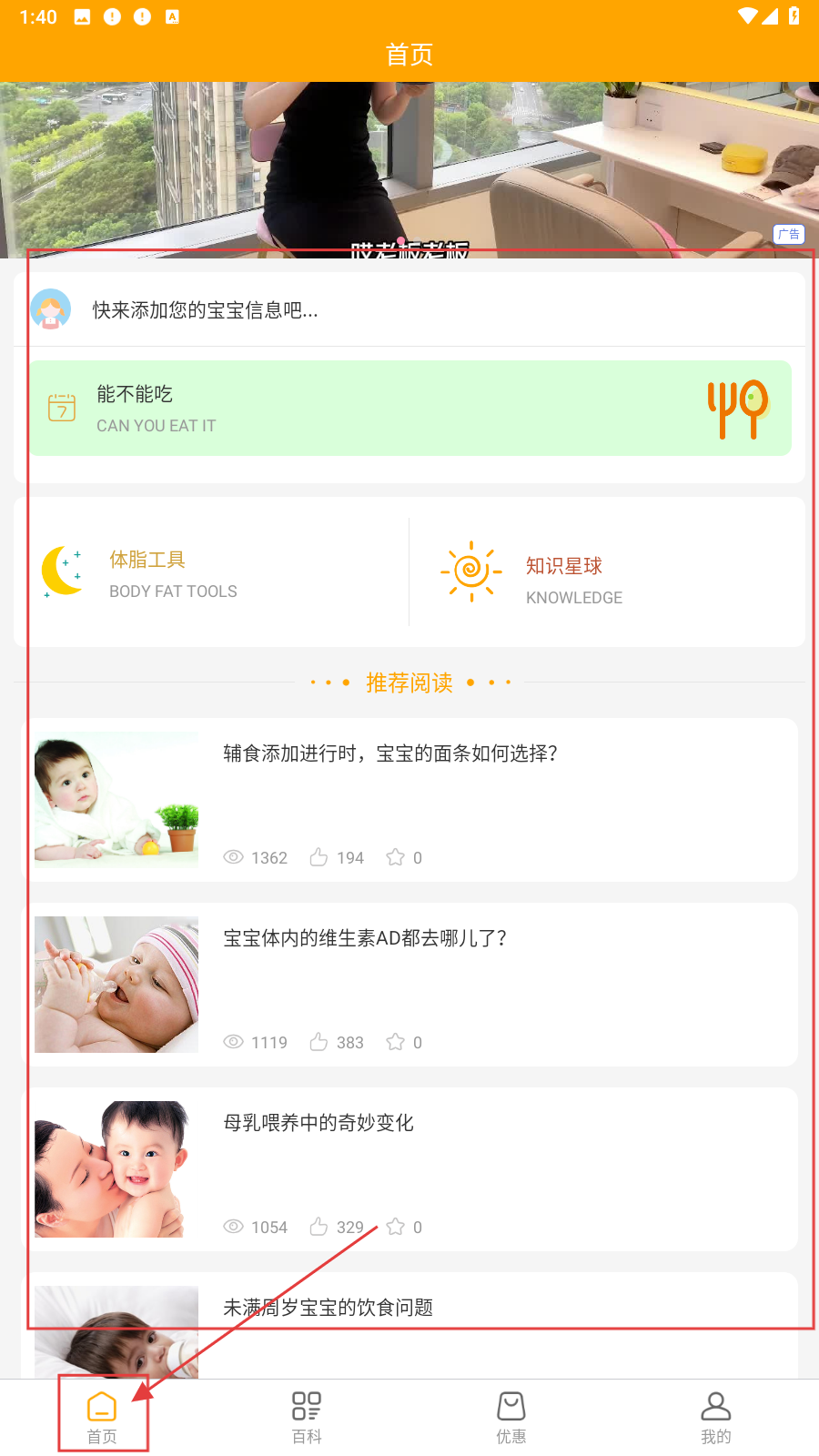 1、打开应用,在首页可以查看推荐文章。