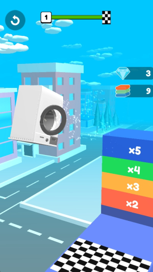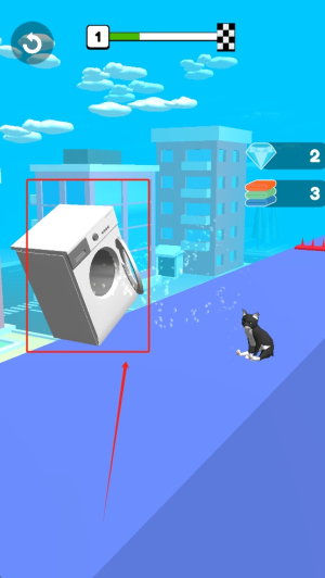 2、翻转洗衣机:通过点击屏幕来翻转洗衣机,使其在赛道上前进。