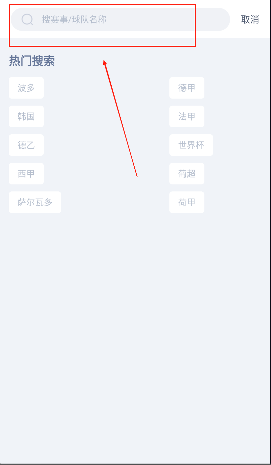 2、在搜索栏输入赛事名称或球队关键词,系统将自动匹配相关比赛并支持设置赛前30分钟推送提醒。