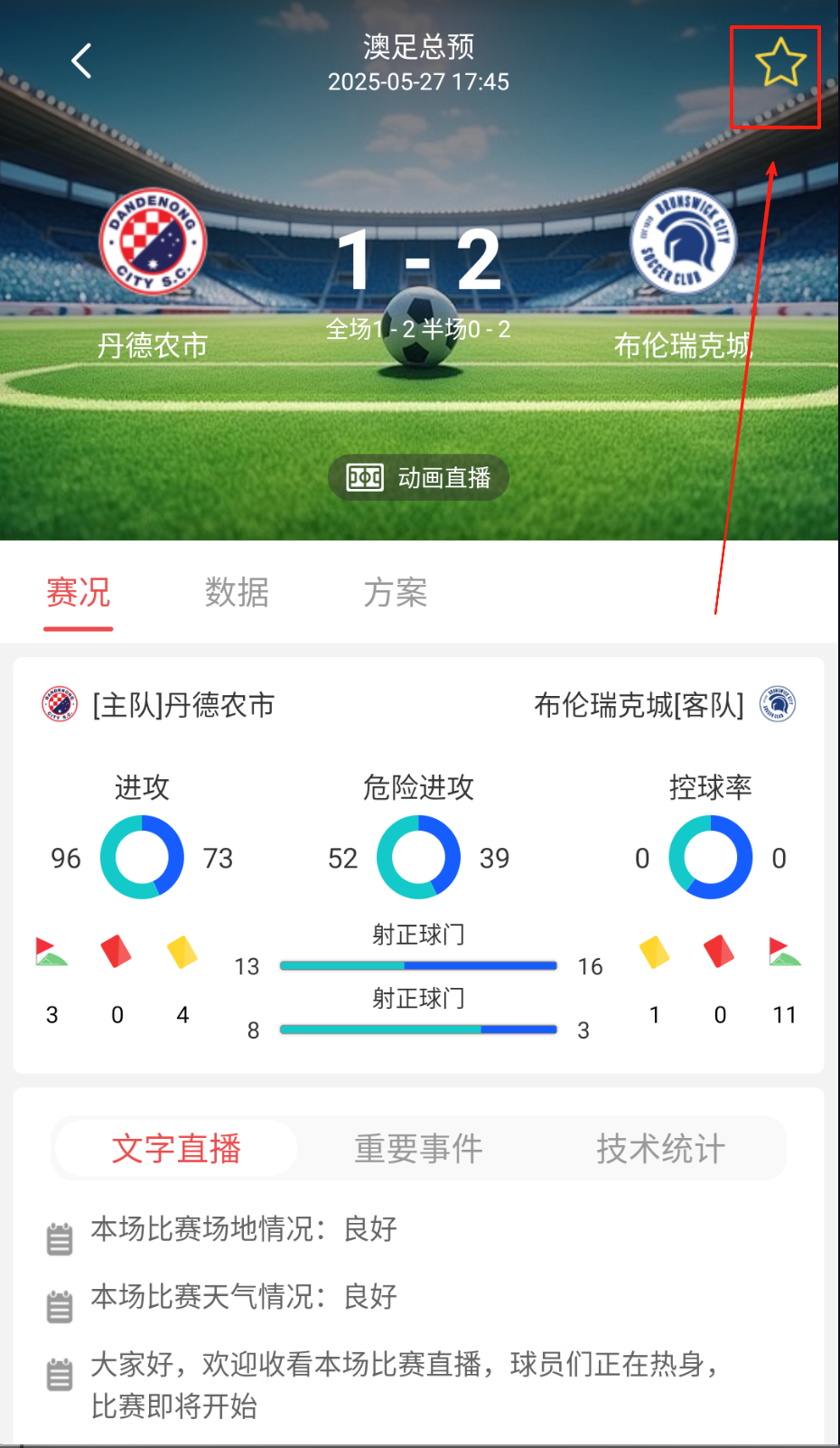 3、实时追踪已关注赛事的动态数据,通过可视化图表掌握角球、射门等关键指标。