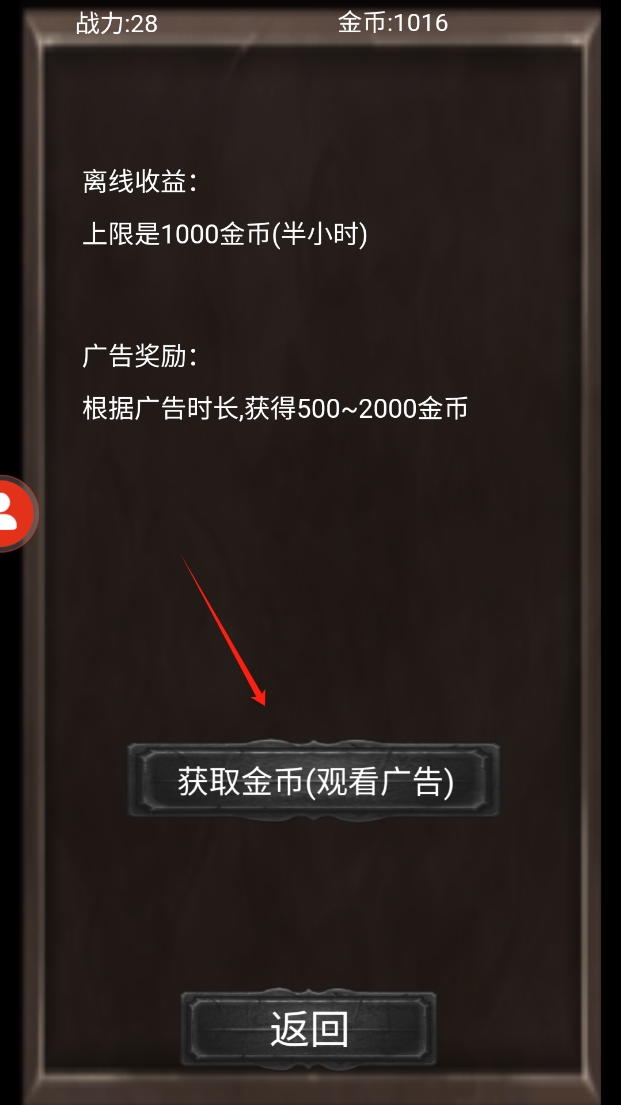 2、获取金币。点击“获取金币(观看广告)”按钮,通过观看广告获取额外金币,增加游戏资源。