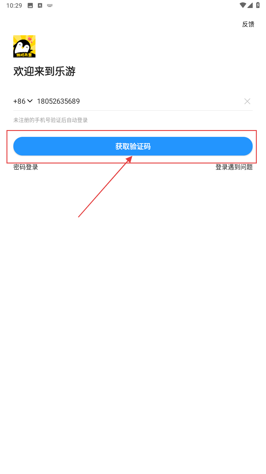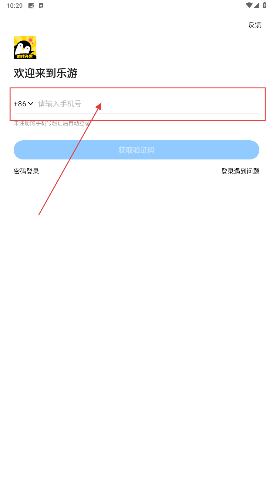 1、打开应用,填写手机号。
