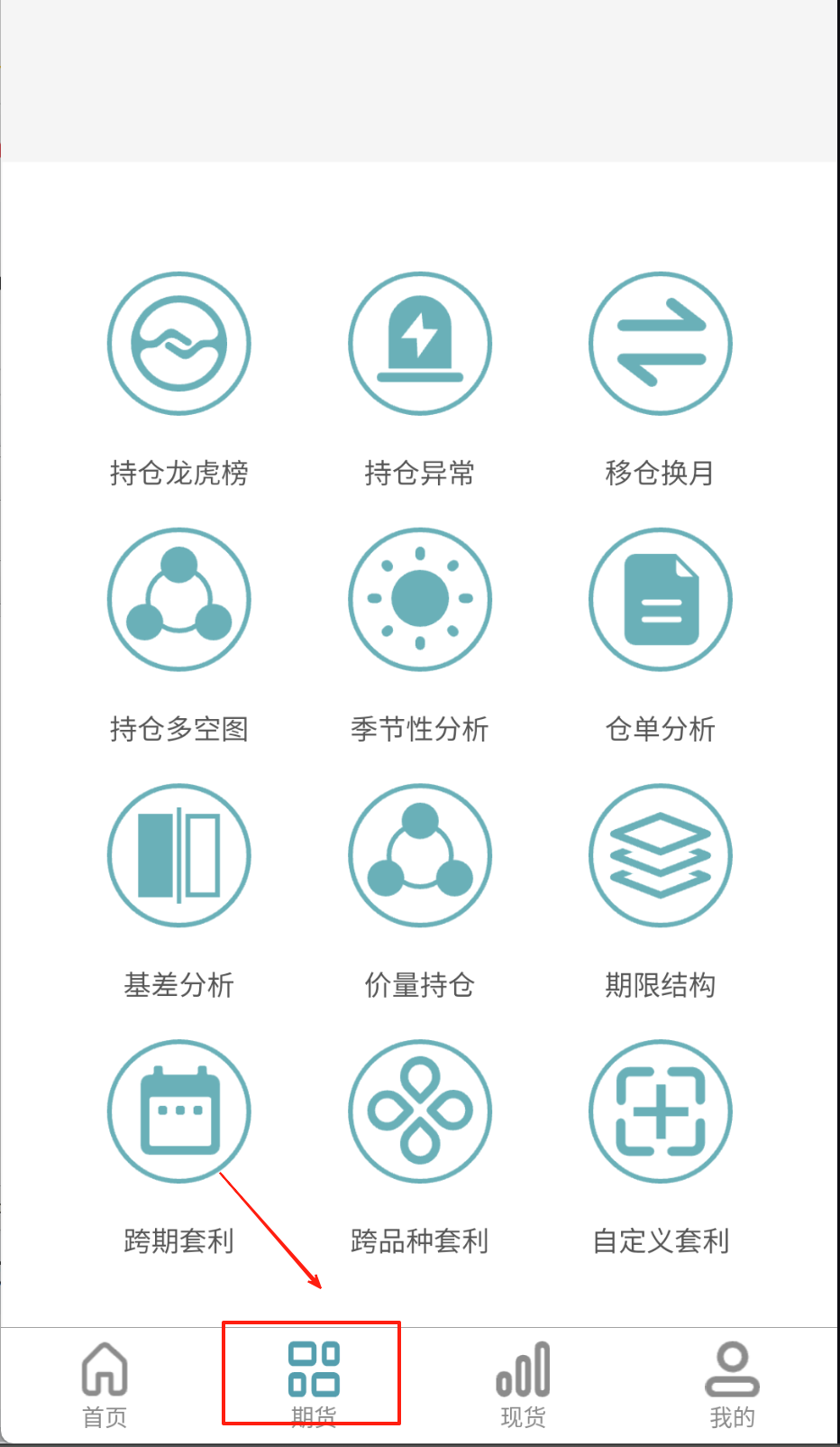 1、打开软件点底部"期货"进入页面,想看持仓数据的话直接戳"持仓龙虎榜"图标就能查多空排名啦。
