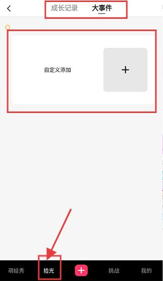 2、点击【拾光】可以添加孩子的人生大事件、成长记录。
