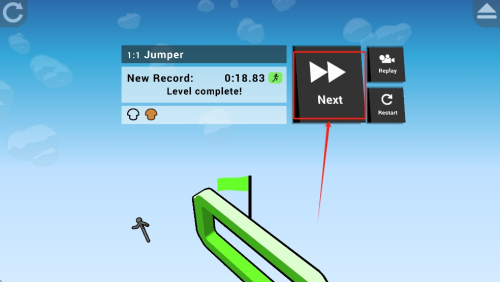 3、完成关卡:成功跳过所有平台后,点击“Next”按钮进入下一关卡或查看成绩。