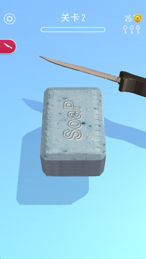 4、完成关卡任务目标即可通关,根据切割精度、完成速度获得评分,积累奖励解锁新刀具和香皂皮肤。