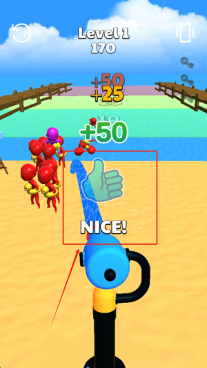 2、击中敌人:成功击中敌人后,你会看到得分提示和“NICE!”的鼓励信息。