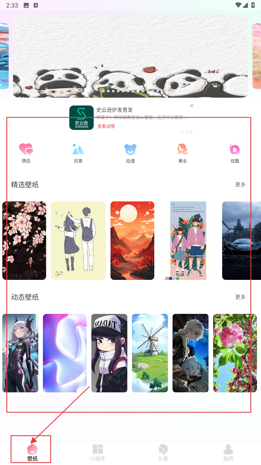 1、打开应用,在【壁纸】界面有很多精选壁纸可以选择。