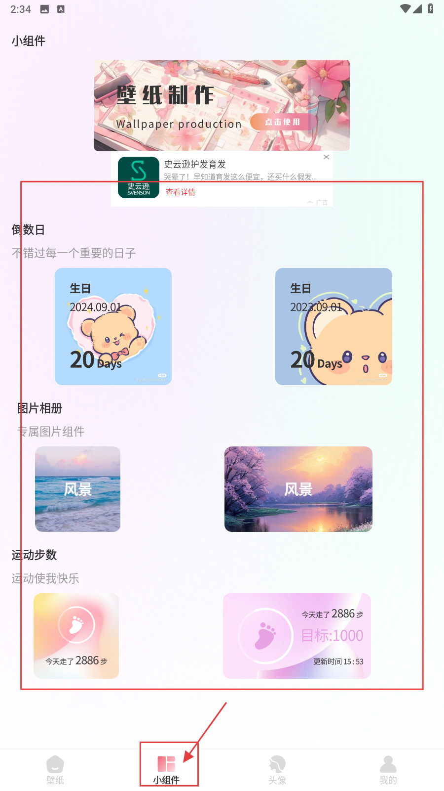 3、在【小组件】界面可以选择喜欢的小组件进行设置。