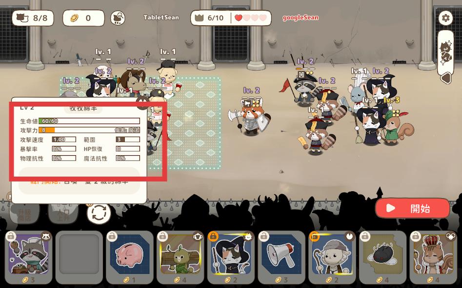 1、动态阵容搭配:贵族猫可切换剑术与魔法形态,武士柴犬触发合击技"旋风斩"。冰原狼与火烈鸟组合激活冰火双生效果。