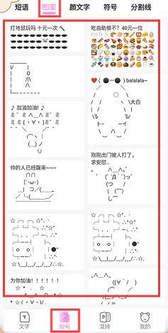 2、切换到【短句】界面,可选择【图案】分类,里面有多种图案样式,可用于装饰文本。