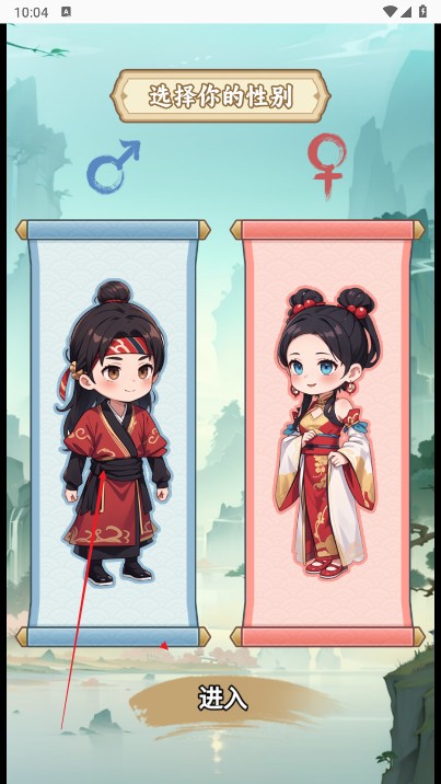 1、游戏开始时,根据喜好在【选择你的性别】界面选择角色性别,确定初始形象。