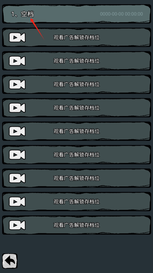 2、在存档界面,点击空档位,通过观看广告解锁。每个存档位都可以通过广告解锁,方便保存游戏进度。