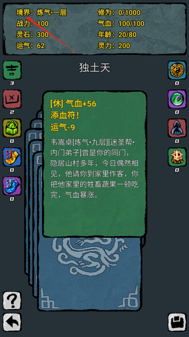 3、丰富的剧情内容,每张卡牌都附带专属剧情文本,选择不同会导致完全不同的修真发展路线。