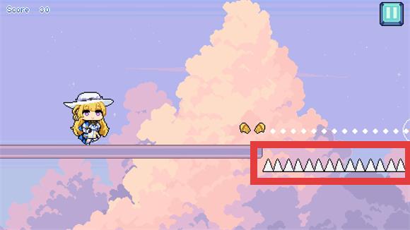 2、注意躲避画面右侧红框内的尖刺陷阱,可提前跳跃越过。