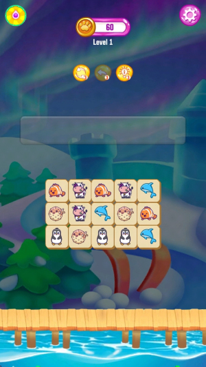 2、创新三消融合玩法,将传统消除与拼图元素结合,通过连接三个相同动物瓷砖消除,玩法新颖,充满策略性与挑战性。