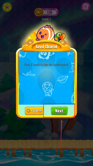 2、接着,当成功消除一对动物后,点击“Next”按钮继续下一关。