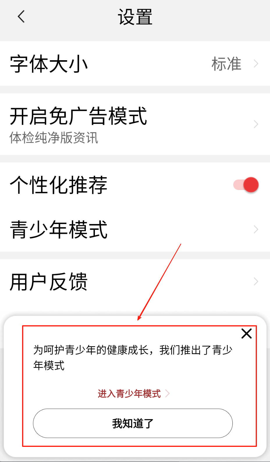 3、进入个人中心选择推荐模式或青少年模式,系统将根据设置自动适配相应内容推送方案。