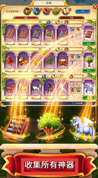 3、在游戏过程中,注意收集各类物品,填充收藏界面的图鉴,集齐【所有神器】,获取额外奖励和成就。