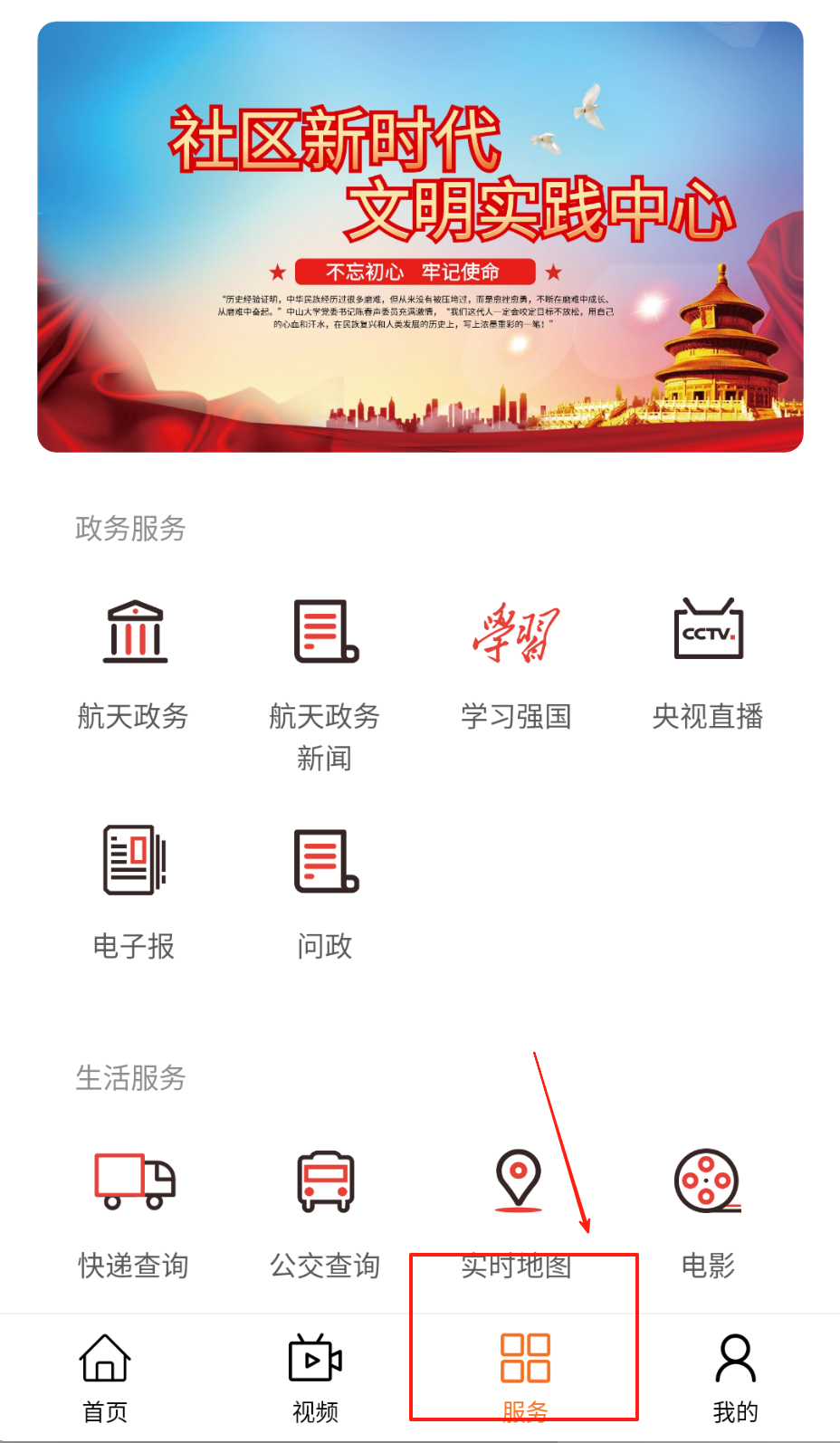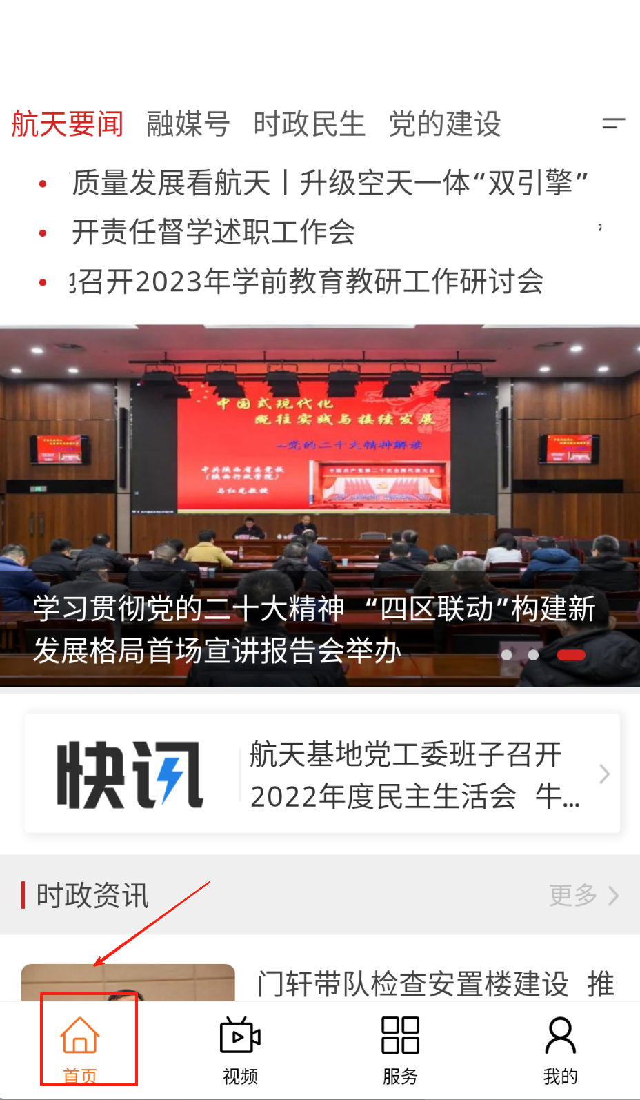 2、在首页按政务要闻、民生热点等分类浏览信息,点击视频专区可观看时政报道。
