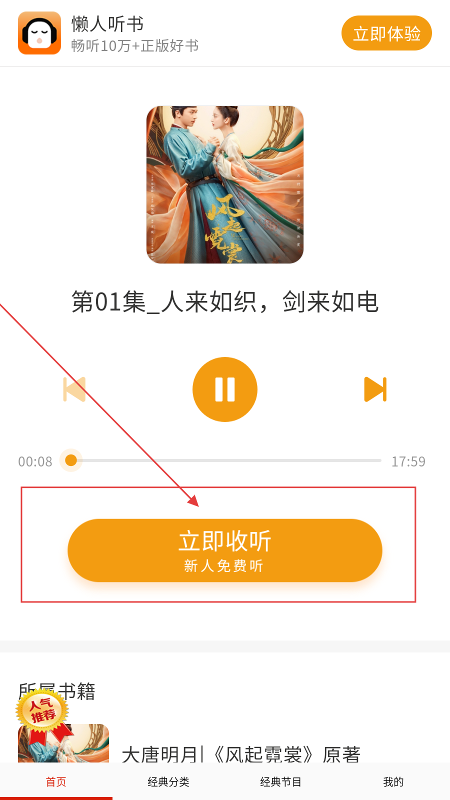 3、点击【立即收听】即可。