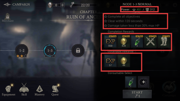 2、在关卡选择界面,留意关卡的【Power】需求,以及任务目标和奖励(经验、金币、道具等),合理规划挑战策略。