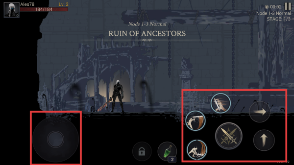 3、进入战斗后,利用左下角虚拟摇杆控制角色移动,通过右下角技能按钮释放技能,击败敌人,推进关卡。