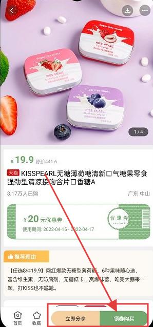 3、进入商品详情页,查看商品信息,包括价格、销量、优惠信息等。点击【领券购买】使用优惠券下单即可。