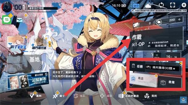 1、在游戏中前往【作戰】的【1-OP】关卡,完成【總共獲得30顆★】任务。