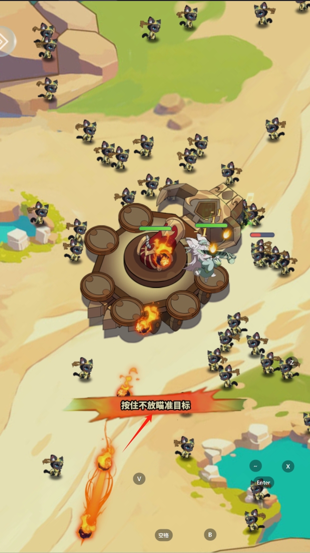 3、按住屏幕不放,瞄准并攻击目标。学习如何使用角色技能,精准打击敌人,提高战斗效率。