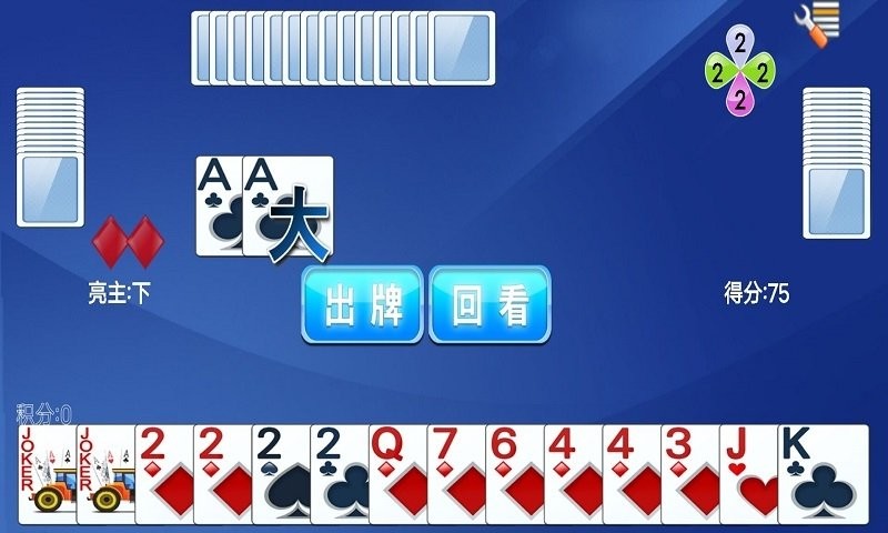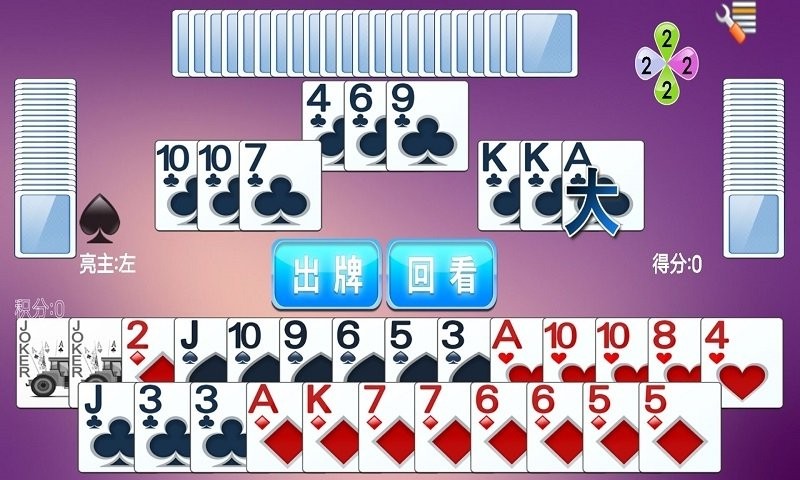 2、动态主牌系统,每局随机确定主花色,根据得分情况轮流坐庄,增加游戏变化和策略深度。