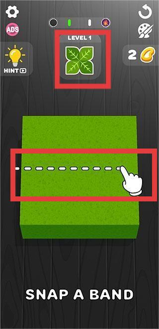 1、游戏开始时,依照提示【SNAPABAND】,按照虚线位置操作,完成关卡任务,注意关卡等级标识【LEVEL1】。