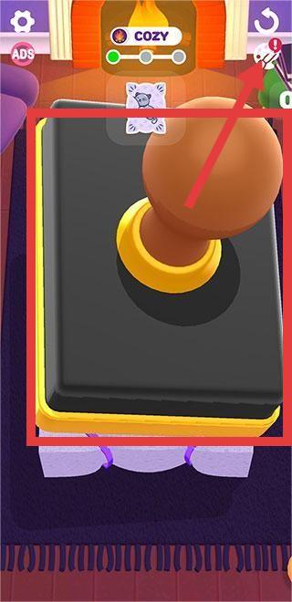 3、对于带有特殊指示(如红色箭头)的操作,像按压图中印章道具,按提示完成动作,留意上方的场景标识如【COZY】,达成关卡目标。