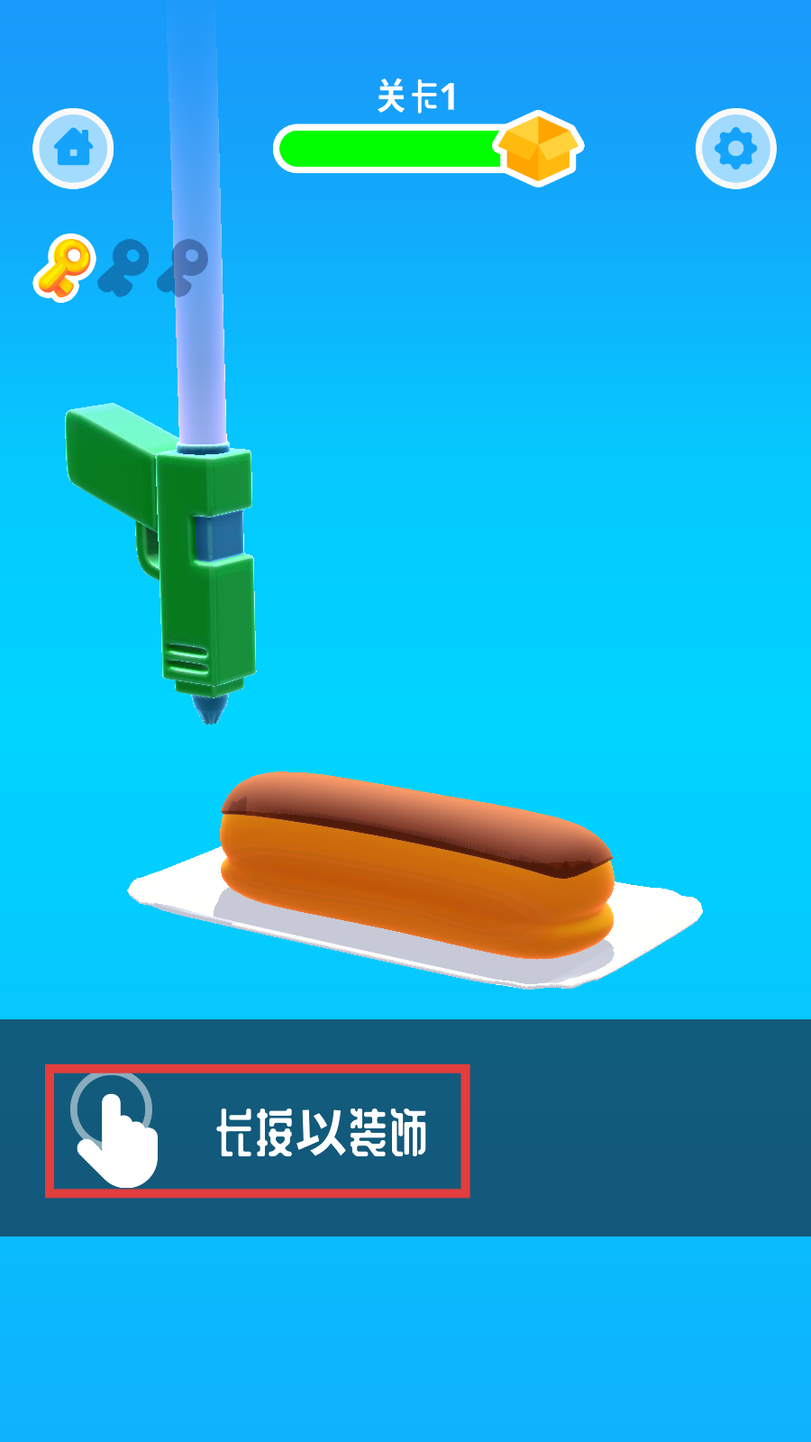 3、按照【长按以装饰】提示,长按操作对食物进行装饰,确保装饰效果符合关卡要求,顺利通过关卡。