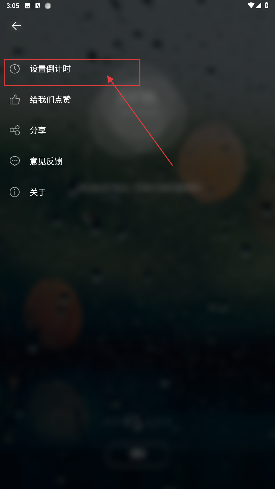 2、在侧边菜单中,点击【设置倒计时】选项。