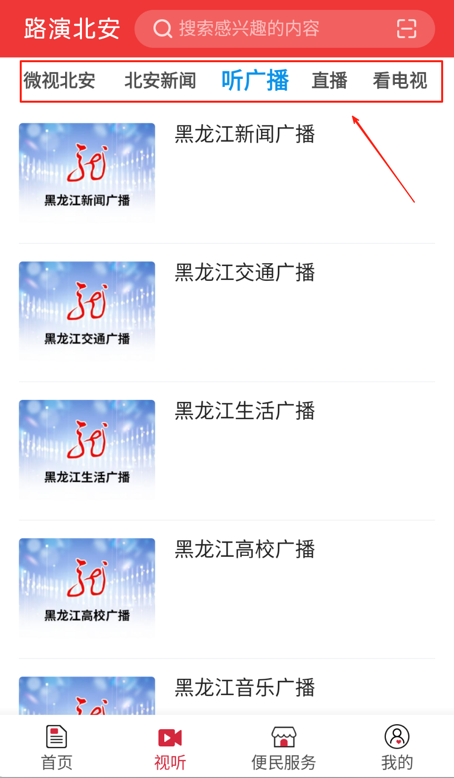 3、切换直播、广播、电视板块多维度了解时事,使用便民模块办理生活事务提升效率。