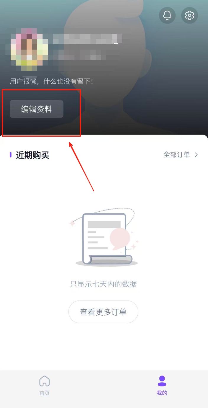 3、管理账户超便捷:点“我的”选“编辑资料”修改昵称简介,或进“近期购买”查阅订单,还能展开七天内的详细记录。