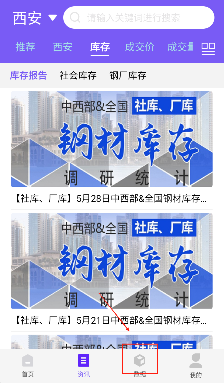 1、进入资讯界面浏览钢铁大宗行业各类信息,涵盖成交价成交量库存等模块,获取市场前沿动态。