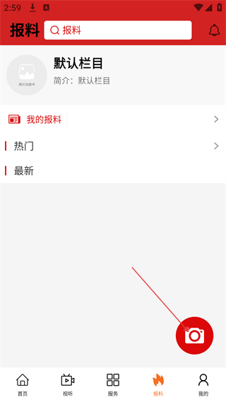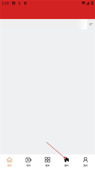 1、在应用首页,点击底部导航栏的【报料】,进入报料页面。