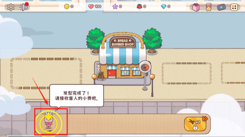 1、收取小费:在发型设计完成后,点击左下角的黄色小费图标,收取客人的小费。