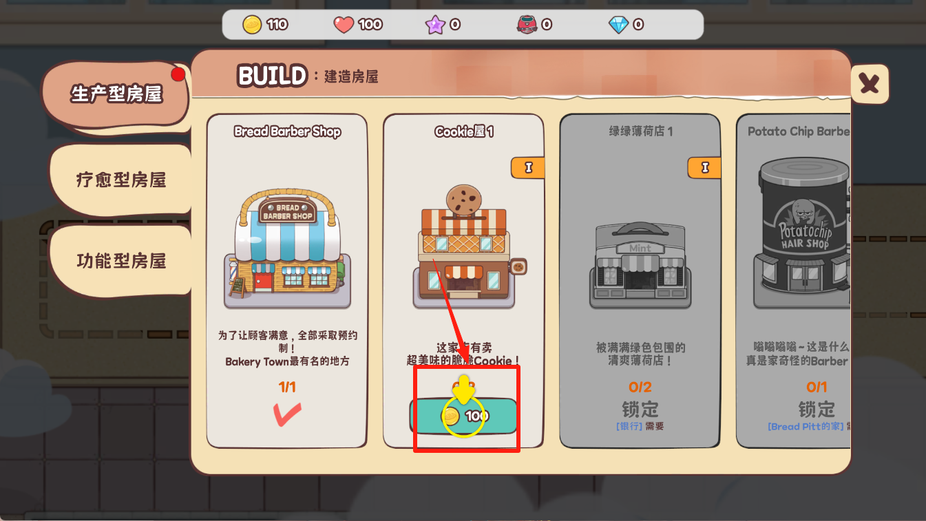3、选择并建造房屋:在建造界面中,选择想要建造的房屋,并点击建造按钮,消耗相应的金币完成建造。