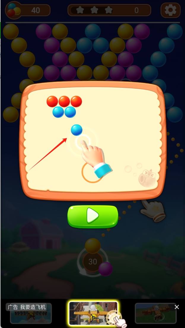 2、通过点击屏幕学习基本操作。掌握射击技巧,通过点击屏幕发射泡泡,击破目标。